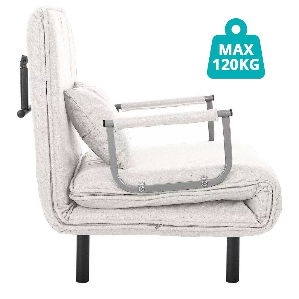 Éld meg a kényelmet és a praktikusságot egyben ezzel a stílusos 2 az 1-ben fotelággyal! Nappal elegáns fotelként szolgál, éjszaka pedig pillanatok alatt kényelmes fekhellyé alakítható. Letisztult, bézs színű kialakítása minden enteriőrbe harmonikusan illik, legyen szó nappaliról, vendégszobáról vagy irodáról. Ideális választás, ha helytakarékos, mégis komfortos megoldást keresel.