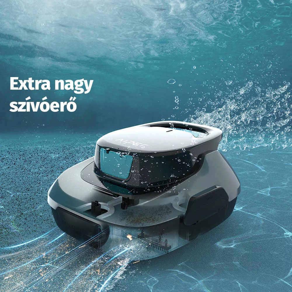 -Helyezd a robotot a medence vízébe – automatikusan elindul.