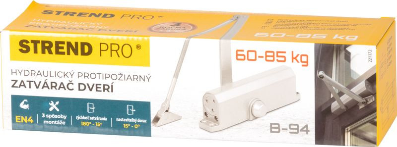 A Strend Pro B-94 egy megbízható hidraulikus ajtócsukó, amelyet 60 és 85 kg közötti ajtótömegekhez terveztek. Tartós konstrukciója és tűzálló tanúsítása ideális választássá teszi mind belső, mind külső alkalmazásokhoz - otthonokban, irodákban vagy középületekben.