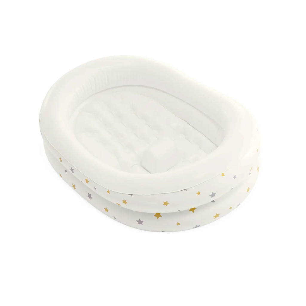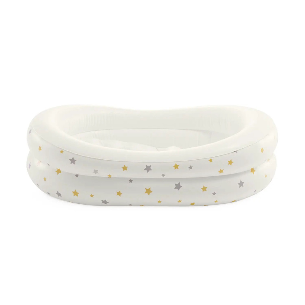A csillagos mintázatú felfújható fürdető ideális megoldás a legkisebbek biztonságos és kényelmes tisztálkodásához. Könnyű kialakításának köszönhetően egyszerűen mozgatható, kis helyen tárolható, így otthoni használatra és utazáshoz is praktikus választás. Puha felülete kíméletes a baba bőréhez, a beépített támasztó dudor pedig segít megelőzni az elcsúszást fürdés közben. A letisztult fehér szín és a kedves csillagos minta nyugodt, barátságos megjelenést biztosít.