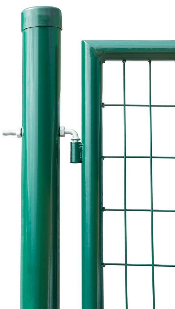 Kétszárnyú kerti kapu hegesztett hálós béléssel, 50 x 100 mm-es szembőséggel és 3,5 mm vastagságú huzallal. Az oszlop átmérője 76 mm. A kivitel cink + PVC. Színe zöld.