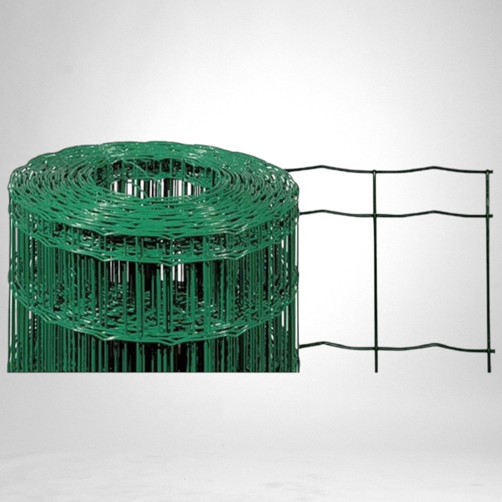 Az erős acél mag és a kettős – horganyzott, majd PVC – bevonat rendkívül hosszú élettartamot garantál, minimális karbantartási igénnyel. A zöld szín belesimul a környezetbe, mégis rendezett látványt teremt. A tekercses kialakítás megkönnyíti a szállítást és a telepítést: egyszerűen kigurítható, formára vágható, és oszlopokhoz rögzíthető. Rugalmasságának köszönhetően enyhe domborzati eltérésekhez is igazodik, így változatos terepen is egységes kerítést húzhatsz vele.