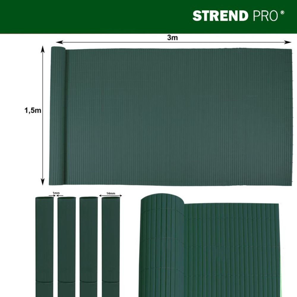 A 1300 g/m² anyagsűrűségű PVC anyag tartós és ellenáll az időjárási hatásoknak. UV-álló kivitele segít megőrizni a színét és szerkezetét hosszabb távon is. Ideális kerítések díszítésére, teraszok leválasztására vagy udvari terek elkülönítésére.