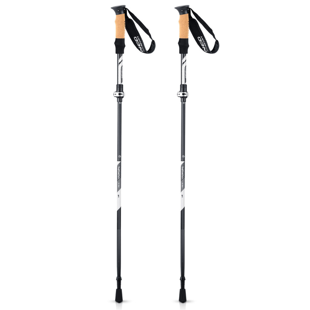 Az NS-382 Neo-Sport túrabotok könnyű, mégis masszív társak minden ösvényen. A teleszkópos kialakítás 84–140 cm között szabadon állítható, így pontosan igazíthatod a magasságodhoz és a terephez. A parafa markolat természetesen tapad a tenyérhez, elvezeti az izzadtságot, a puha csuklópánt pedig biztonságot ad a meredek részeken. A karbonszál-mintás alumínium test csökkenti a rezgést, miközben csak 710 g a pár tömege, ezért hosszú túrákon sem terheli feleslegesen a kart.