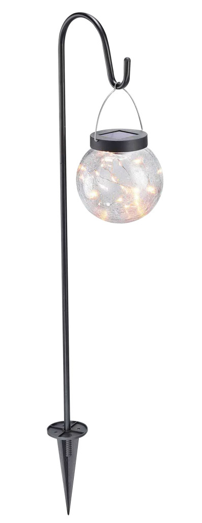 Varázsolj meghitt ragyogást a kertedbe a Strend Pro Rigel napelemes lámpával! A 12 cm átmérőjű, repesztett üveg gömbben 20 apró LED izzószál rejtőzik, amelyek napnyugta után finom, mégis látványos fényt ontanak. Napközben a fedélbe épített napelem feltölti a mellékelt AAA akkumulátort, így kábelek nélkül élvezheted a hangulatvilágítást. A masszív fém akasztórúd és a leszúrótüske gondoskodik róla, hogy a lámpa stabilan álljon a gyepen, ágyásokban vagy a teraszon.
