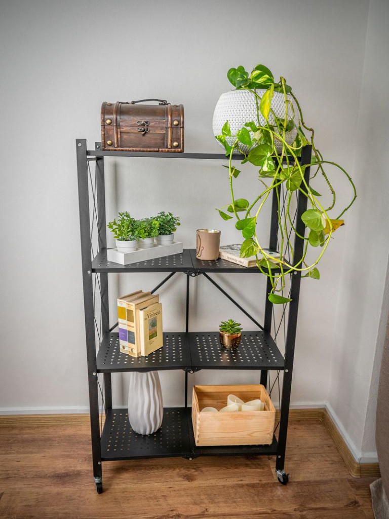 Ez a polcrendszer a rugalmasság és funkcionalitás tökéletes ötvözete. A 127 cm-es magasság és négy erős polc elegendő helyet kínál szerszámok, dobozok vagy háztartási kellékek számára. Az összecsukható funkció miatt ideális, ha időnként van csak szükséged plusz tárolóra. A modern fekete kivitel esztétikus és jól illeszkedik bármilyen környezetbe, a görgős kialakítás pedig mobilitást és kényelmes használatot biztosít.