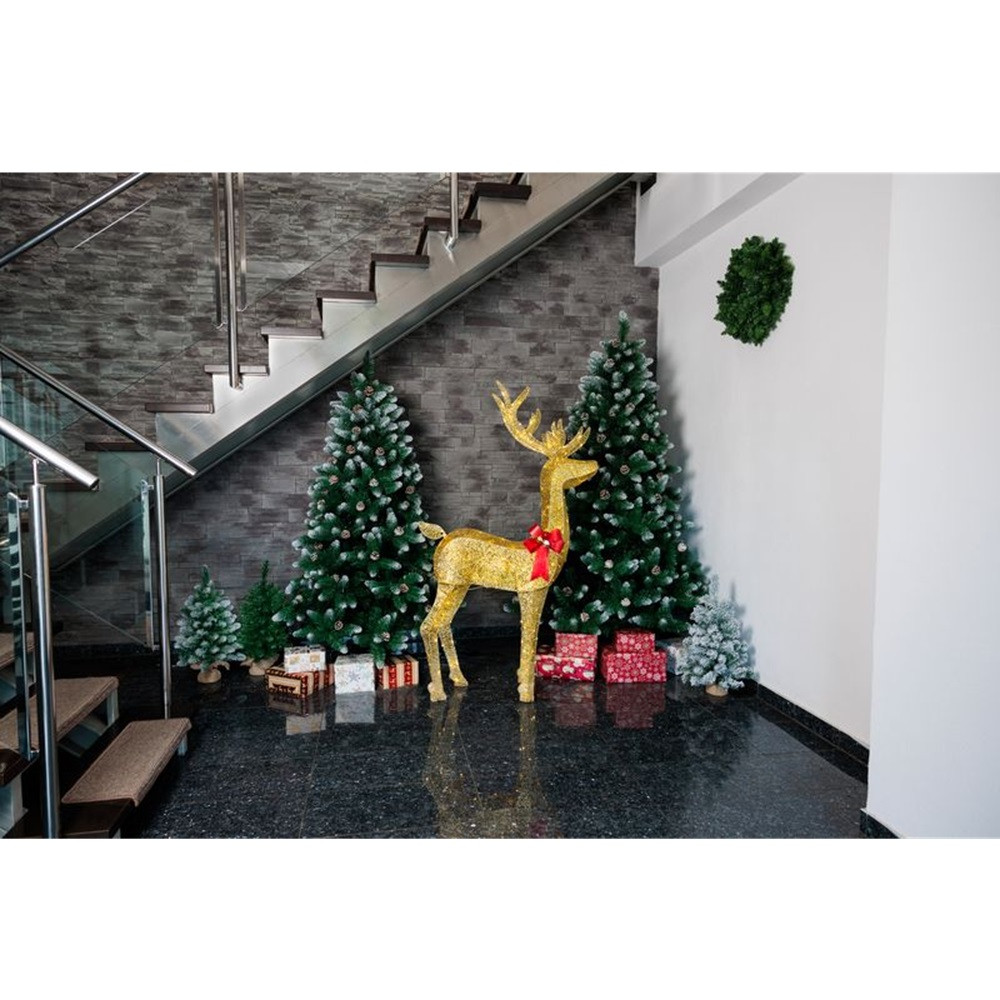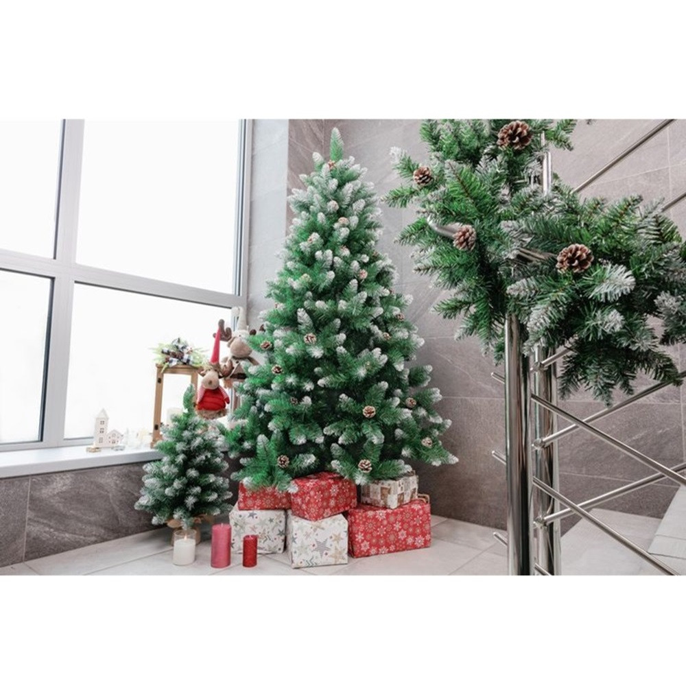 A sűrű ágak és a finoman elhelyezett hóhatás igazi téli csodavilágot teremt az otthonodban. A tobozok természetes díszítése tovább fokozza a fa élethű megjelenését.