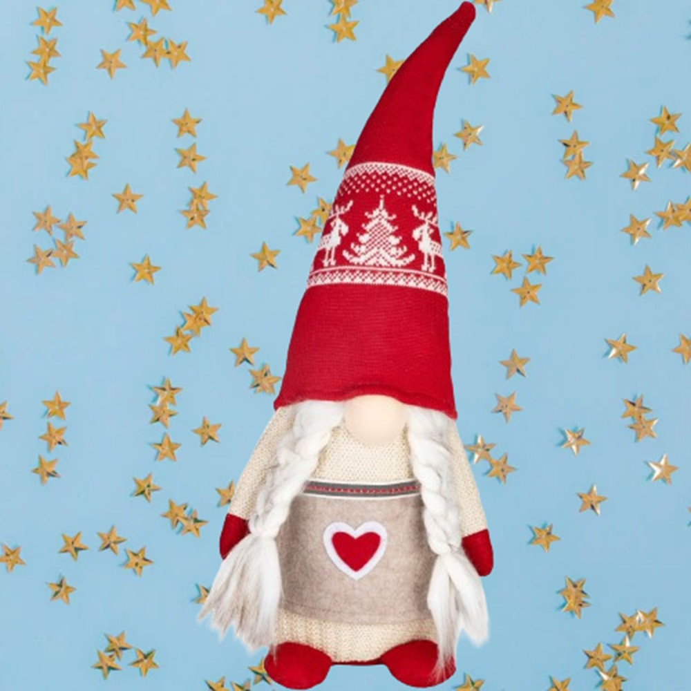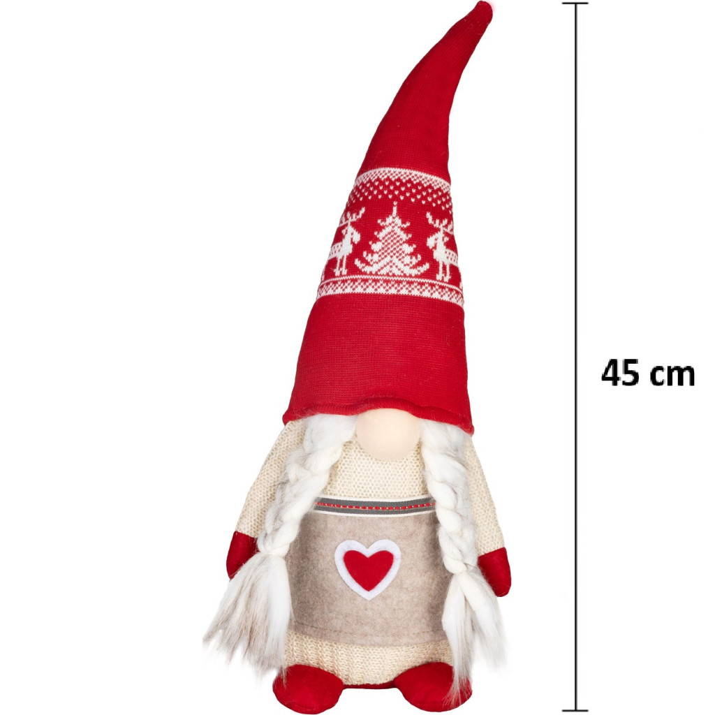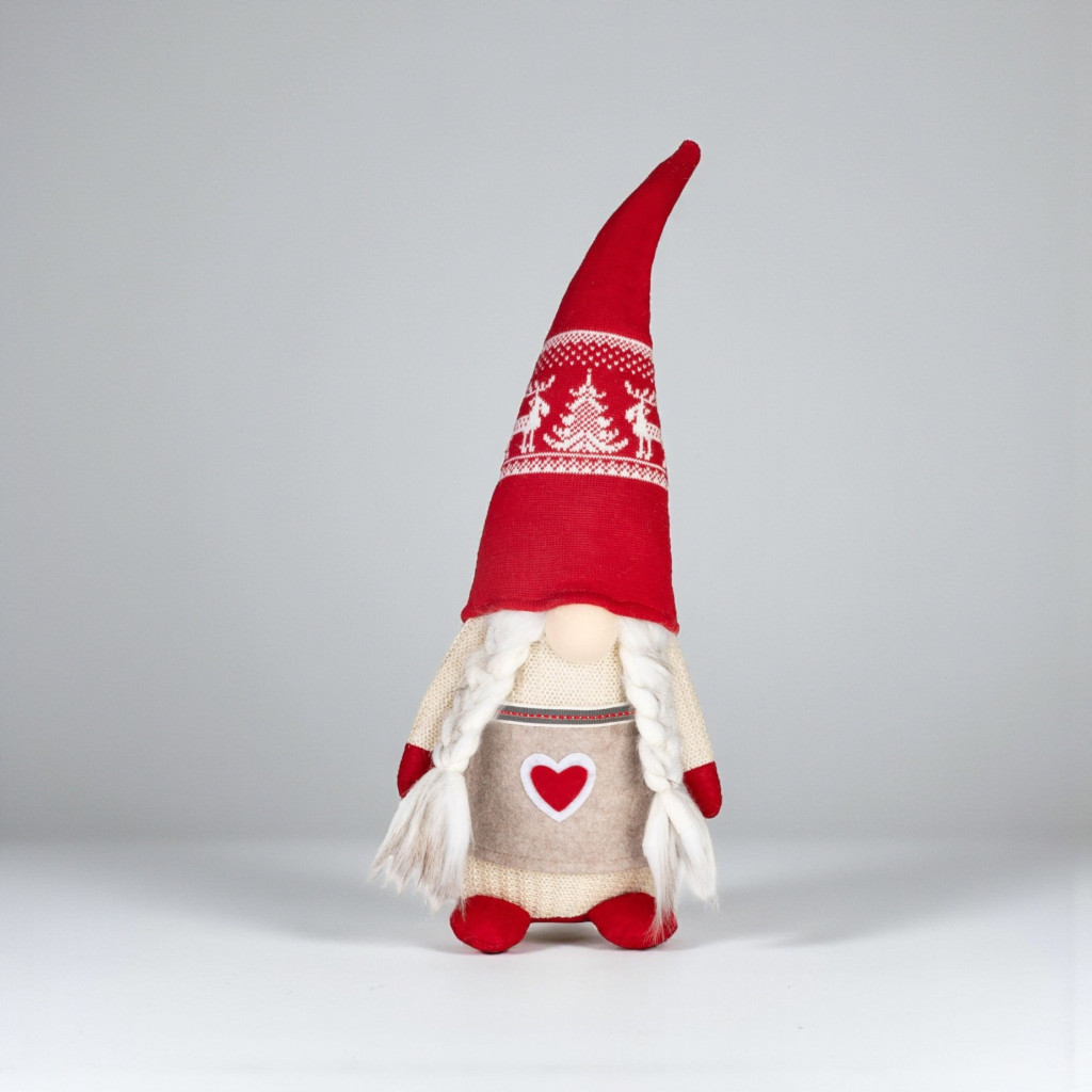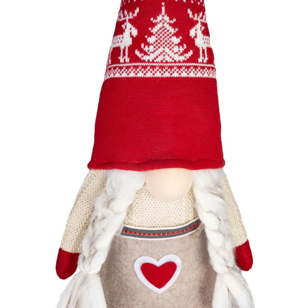 Ez a bájos kis figura hosszú, piros, téli mintás sapkájával és fonott copfjaival azonnal meghitt, szeretetteljes hangulatot csempész a lakás minden szegletébe.