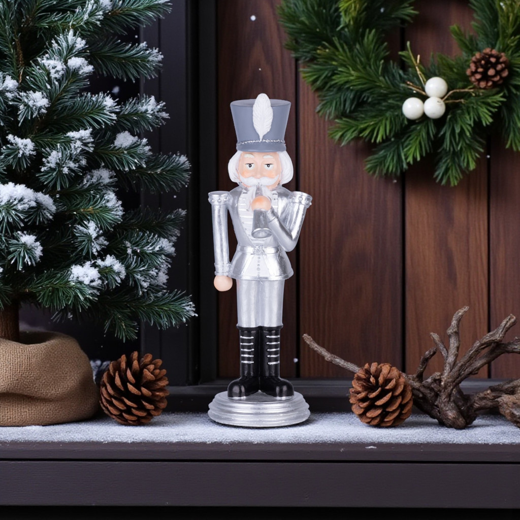 Engedd, hogy az ünnep eleganciája és klasszikus varázsa beköltözzön otthonodba ezzel a lenyűgöző MagicHome Diótörő trombitával dekorációval!