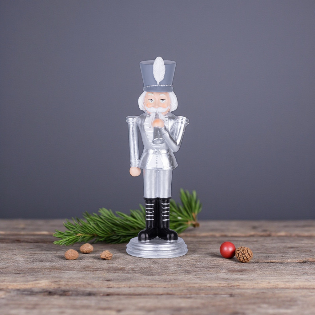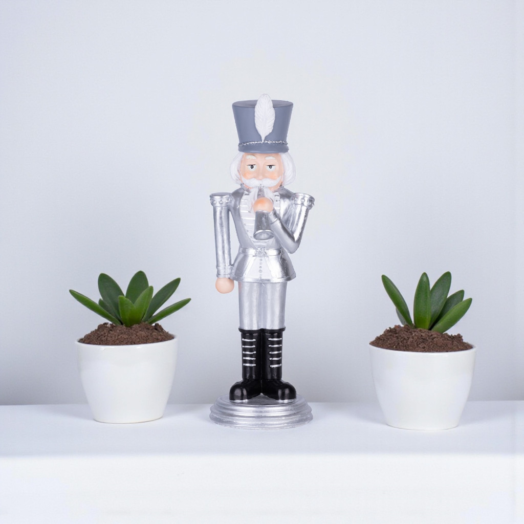 A diótörő már generációk óta a karácsonyi tradíciók egyik legikonikusabb alakja – és ez az ezüst színű, fenségesen kidolgozott figura nem csupán egy dísz, hanem a karácsony méltóságteljes szimbóluma.