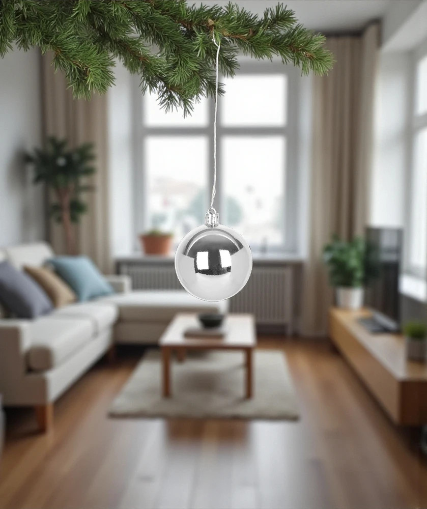 A készlet 20 db, 6 cm átmérőjű gömböt tartalmaz, amelyek tökéletes méretűek a karácsonyfa díszítéséhez. Az kiváló összhatást biztosítanak, miközben az ezüst szín fényesen kiemeli a karácsonyfa zöldjét.