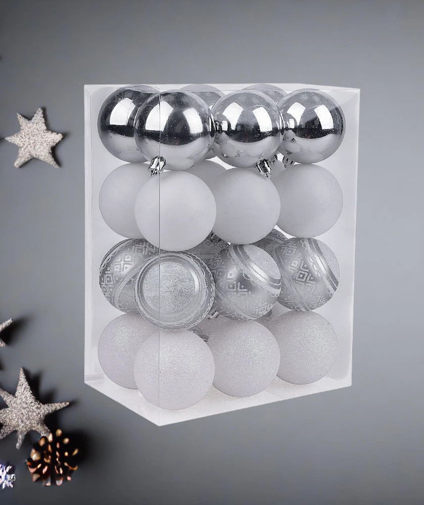 Varázsold karácsonyfádat ragyogóvá ezzel a fehér-ezüst gömb szettel, és teremts meghitt, ünnepi hangulatot otthonodban!