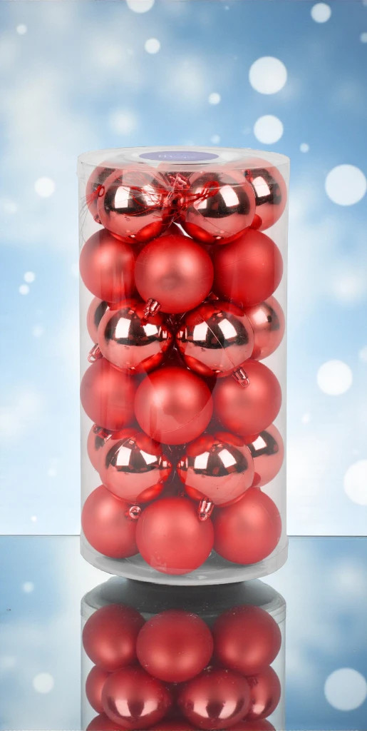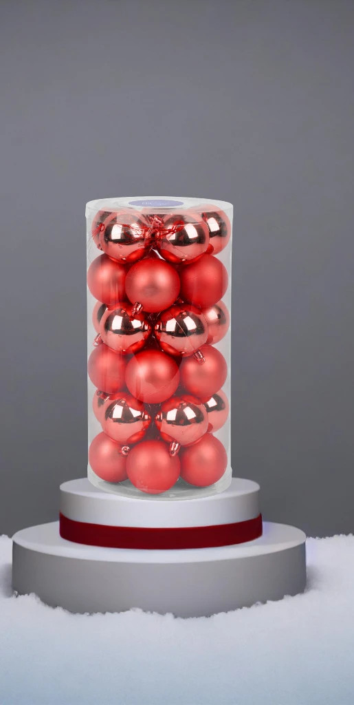Egészítsd ki karácsonyi dekorációdat ezzel a 30 darabos piros gömb szettel, amely egyszerre klasszikus, tartós és könnyen kombinálható más díszekkel.