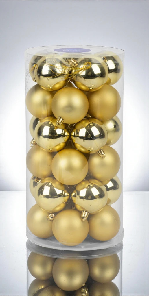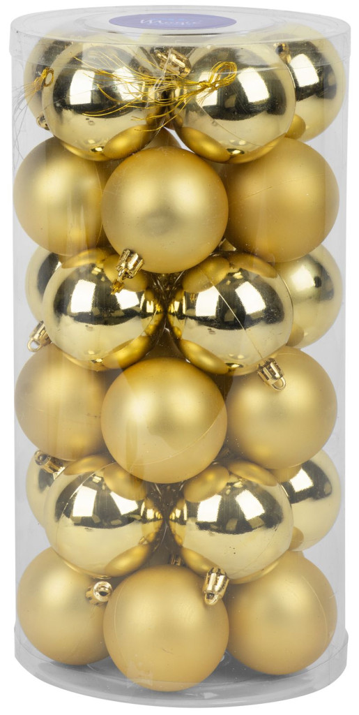 A készlet 30 db, 6 cm átmérőjű gömböt tartalmaz, amelyek ideális méretűek ahhoz, hogy harmonikus és ünnepi összképet teremtsenek. Az arany szín csodálatosan visszaveri a fényeket, és meleg, meghitt hangulatot kölcsönöz a nappalidnak.