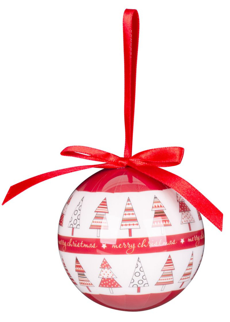 A készlet 6 db, 7,5 cm átmérőjű gömböt tartalmaz, amelyeken karácsonyfa minta található. Ez a részlet különlegesen egyedi megjelenést ad a dekorációnak és igazán hangulatossá varázsolja a fát.