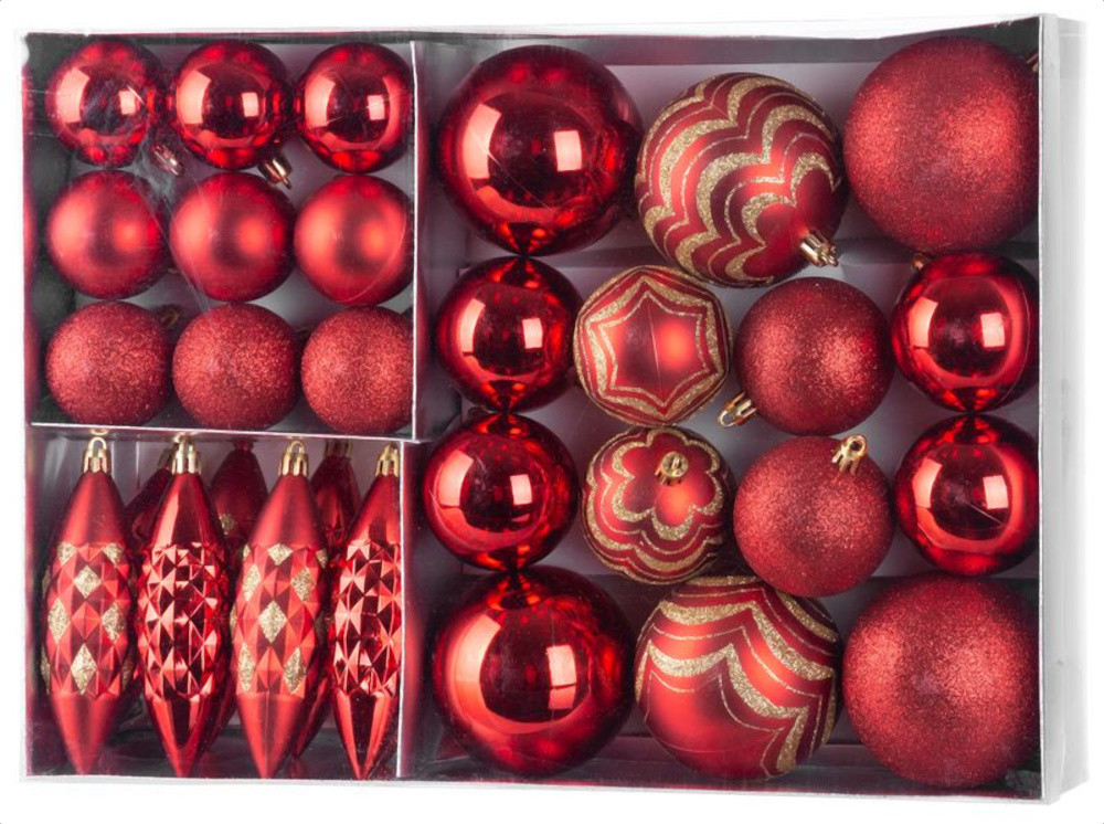 Varázsold karácsonyfádat ragyogóvá ezzel a változatos méretű piros díszkészlettel, és hozd el otthonodba az ünnepek meleg fényét!