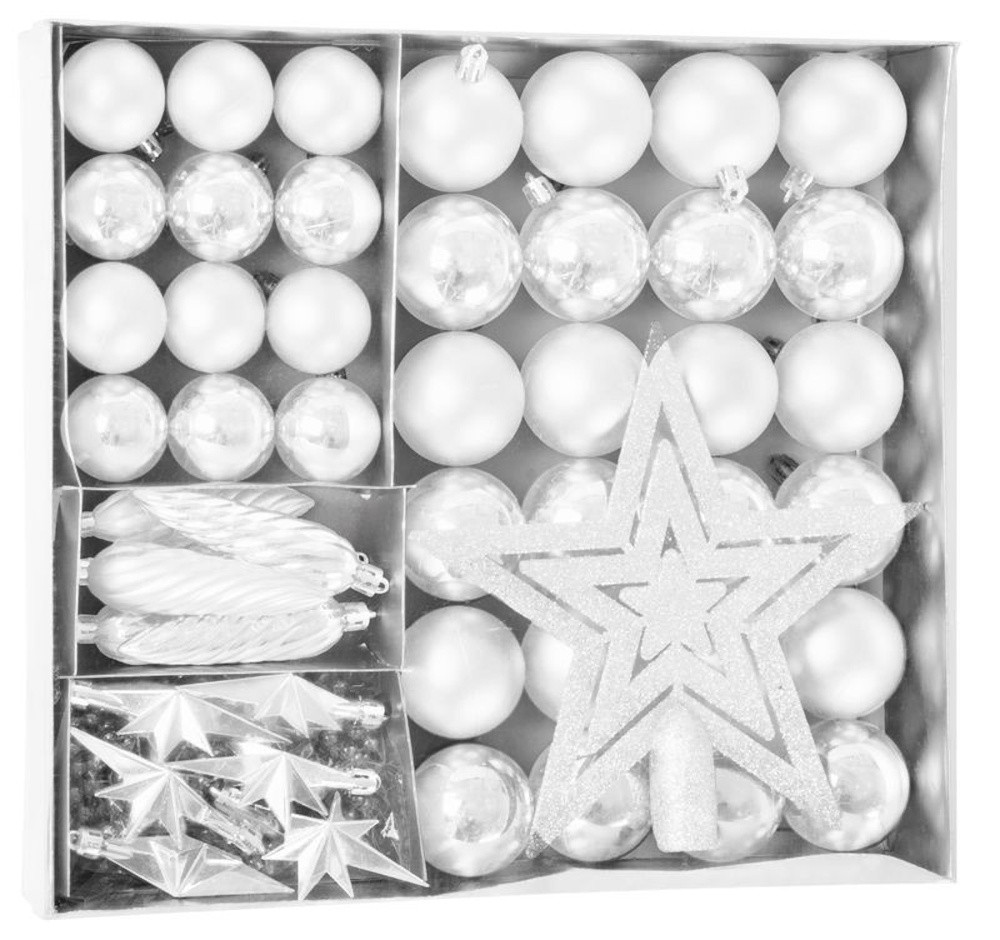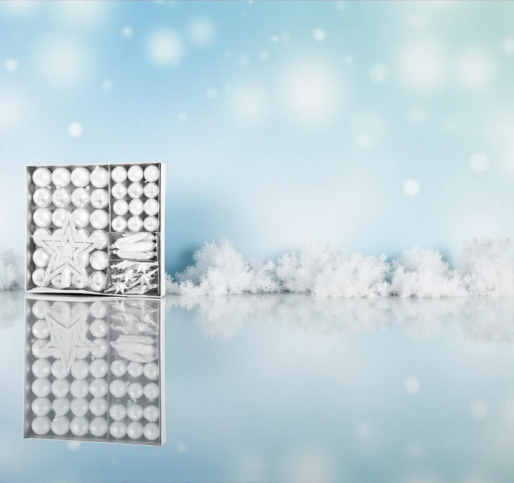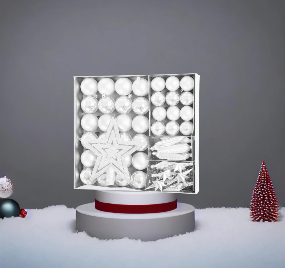 Egészítsd ki ünnepi dekorációdat ezzel az 50 darabos fehér karácsonyfa díszkészlettel, amely minden részletével hozzájárul az igazi karácsonyi hangulathoz.