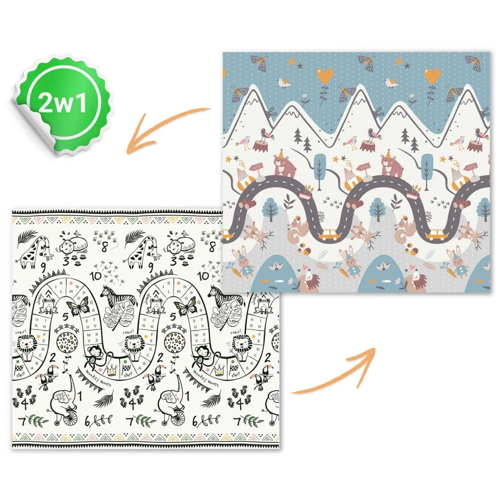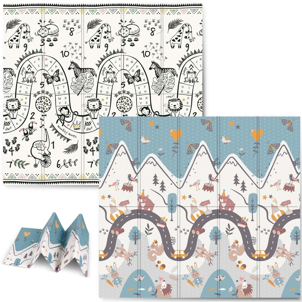 A Nukido NK-340 hajtogatható habszőnyeg 200×180 cm-es teret kínál a babák felfedezéséhez és a kúszás tanulásához. Az 1 cm vastag, prémium XPE hab puhán párnáz, hőszigetel a hideg padló ellen, és megbízhatóan csillapít minden esést. Kétoldalas mintái – pasztell hegyvidéki állatok és fekete-fehér játékos pálya – szórakoztatják és fejlesztik a picik érzékelését. Könnyű, csúszásmentes, harmonikaszerűen hajtható, így otthon, utazáson vagy pikniken is tökéletes választás.