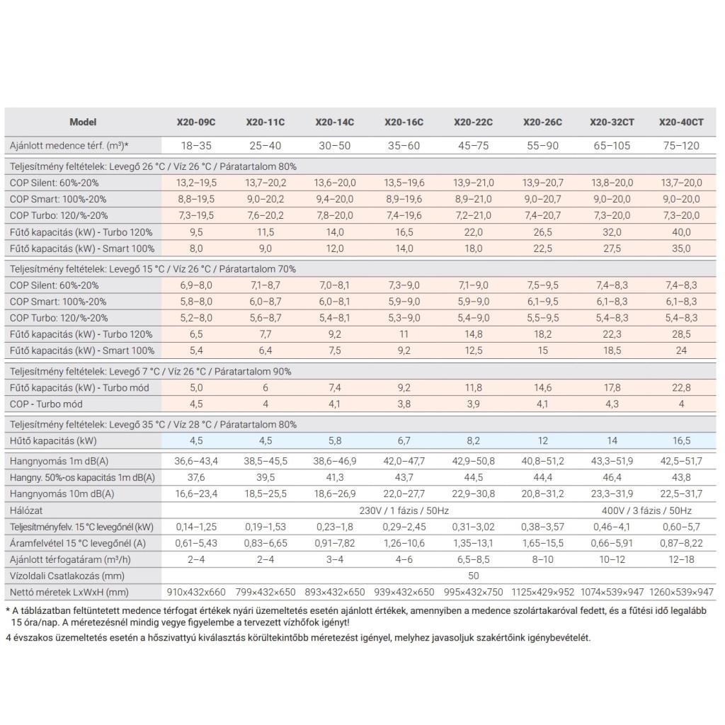 • COP (26°C levegő): 7,3 – 19,5