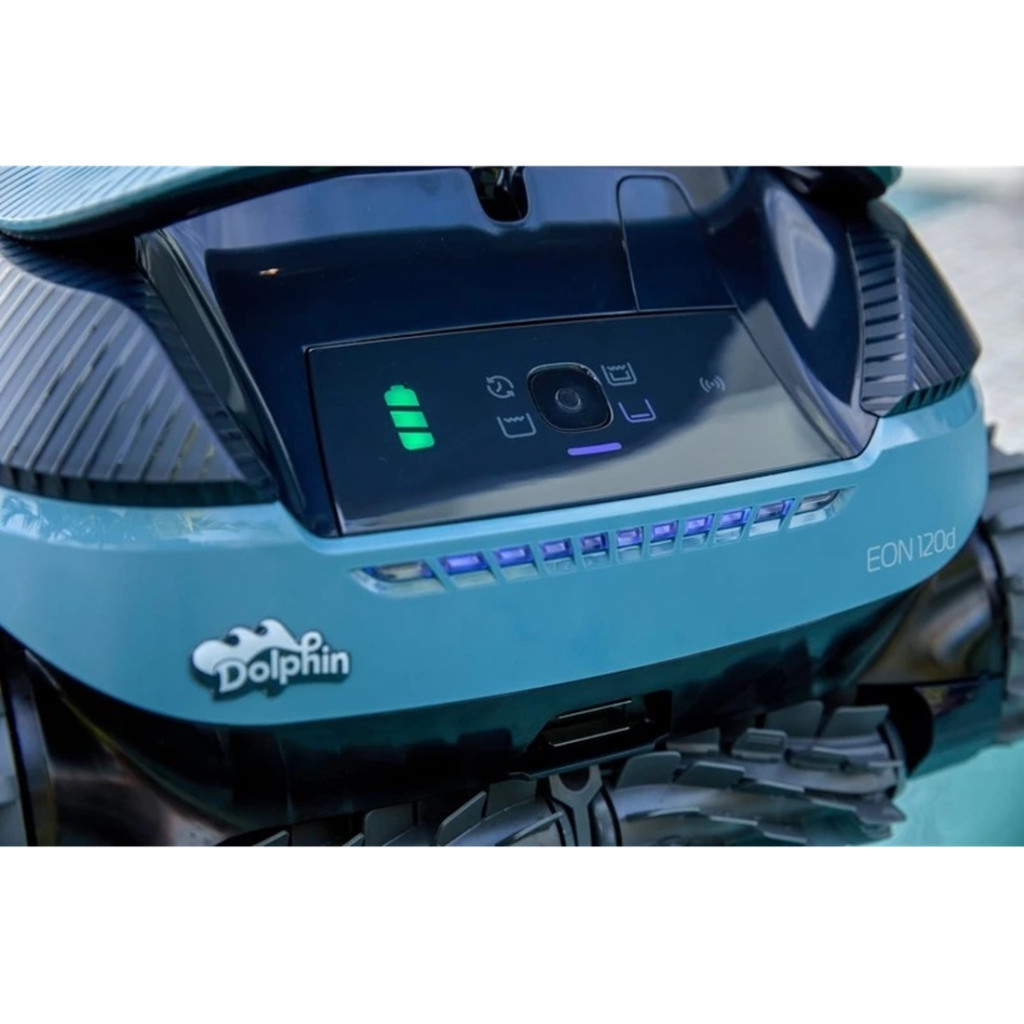 A Dolphin EON 120 medencetisztító robot a DebrisLock™ szűrőrendszerrel és visszamosási technológiával csökkenti a szűrő tisztításának gyakoriságát. SmartMap navigációja minden medenceformához alkalmazkodik, míg az UltraRun mód automatikus működést biztosít. Az alkalmazásvezérlés segítségével könnyedén ütemezheted és ellenőrizheted a tisztítást.