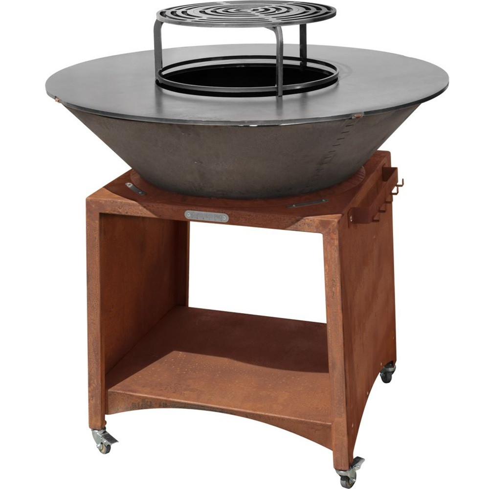 Dobd fel a kerti összejöveteleket a Strend Pro Fiesta tűzrakó grilllel, amely egyszerre nyújt látványos tűzrakóhelyet és praktikus grillezési lehetőséget. A 100 cm átmérőjű acél sütőfelület bőséges helyet biztosít többféle étel elkészítéséhez, míg a masszív kialakítás stabil használatot garantál. Elegáns, rozsdás hatású megjelenése különleges hangulatot teremt minden szabadtéri alkalom során.
