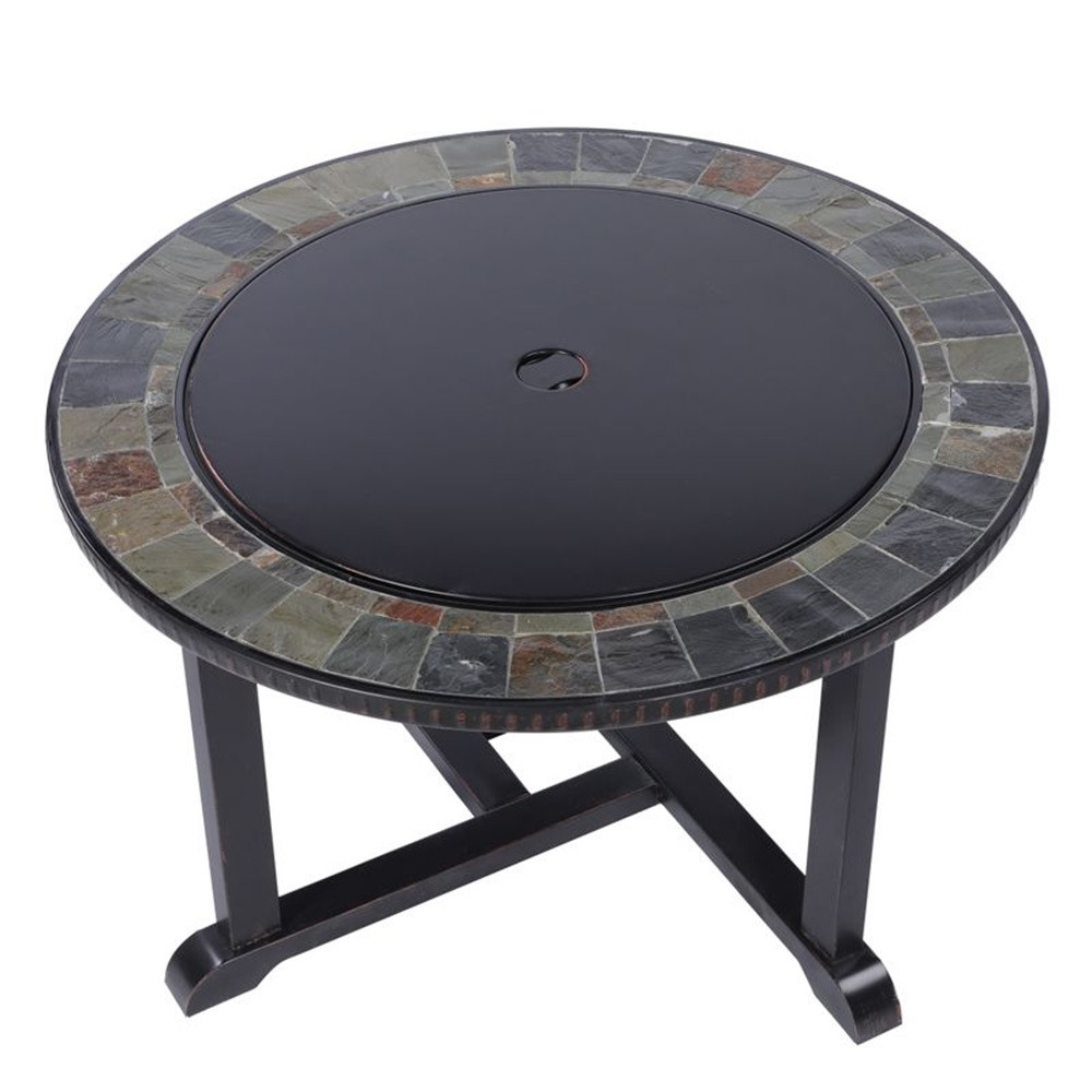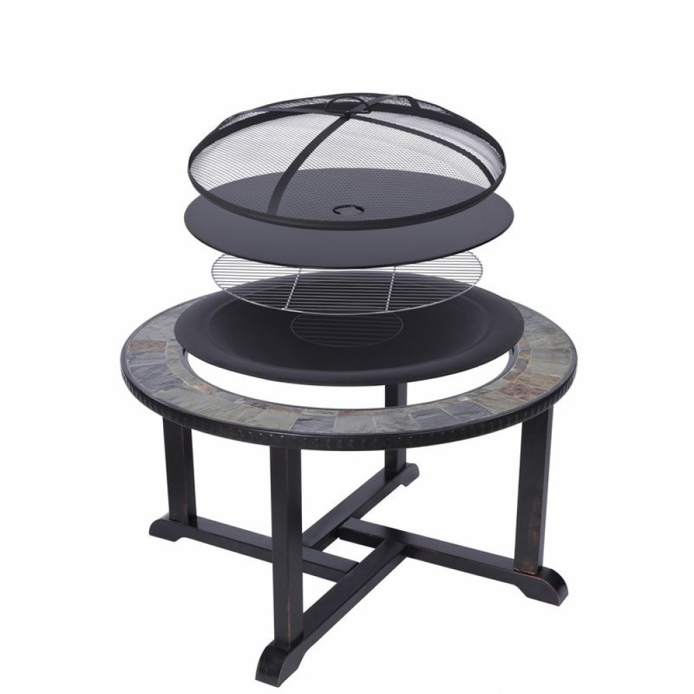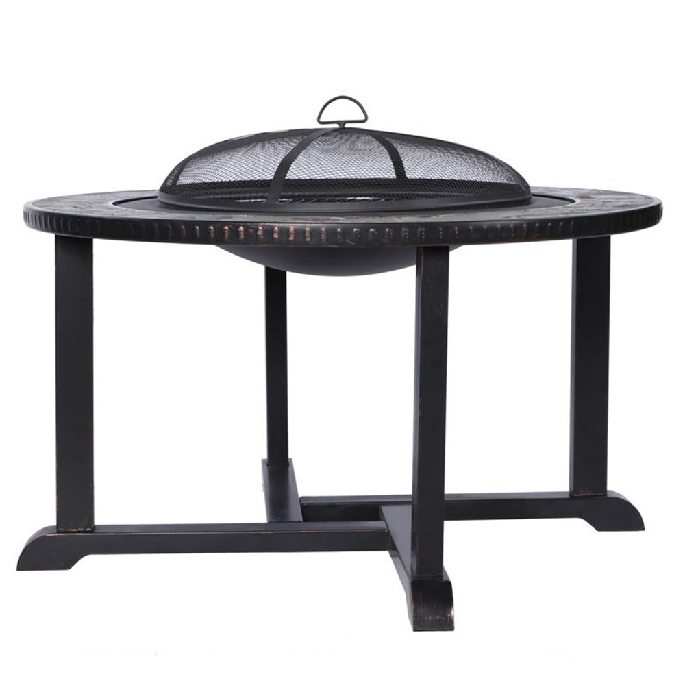 A mediterrán stílusú, fém szerkezetű tűzrakóhely stabil és tartós kialakítású. A 58 cm átmérőjű grillrács elegendő helyet biztosít a grillezéshez, miközben a dekoratív oldalsó csempézett felület praktikus tároló- vagy lerakóhelyként is szolgál. A készlethez tartozó ponyvával a tűzrakóhely teljes értékű asztallá alakítható.