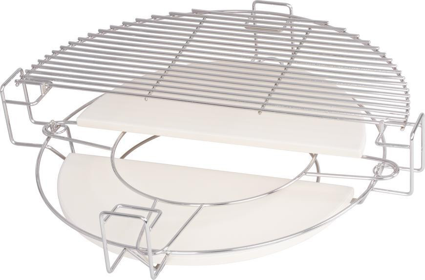 A Kamado Egg 21" grillhez készült állítható rács kővel ideális kiegészítő minden igényes grillező számára. Univerzálisan használható, legyen szó húsok, zöldségek vagy pizzák elkészítéséről – a hőtartó kőnek köszönhetően az ételek egyenletesen sülnek át, miközben megőrzik szaftosságukat és eredeti ízüket.