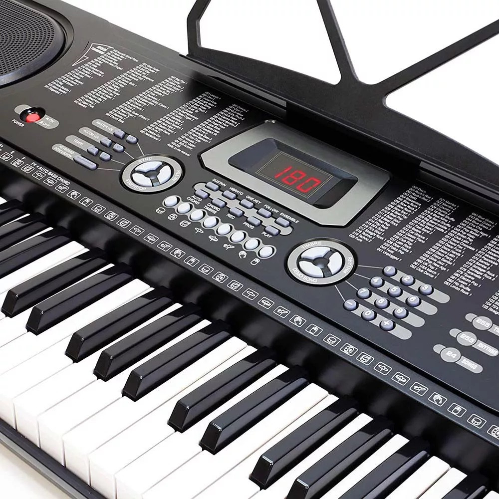 Fedezd fel a zenélés örömét ezzel a 61 billentyűs szintetizátorral, amely tökéletes kezdők számára! A komplett csomag mindent tartalmaz, amire szükséged lehet: állvány, szék, kottatartó, mikrofon és adapter is jár hozzá. Az USB portnak és a beépített tanuló funkciónak köszönhetően könnyedén elsajátíthatod a zene alapjait, miközben saját dallamaidat is megalkothatod. Inspiráló, szórakoztató és kreatív élmény minden korosztály számára.