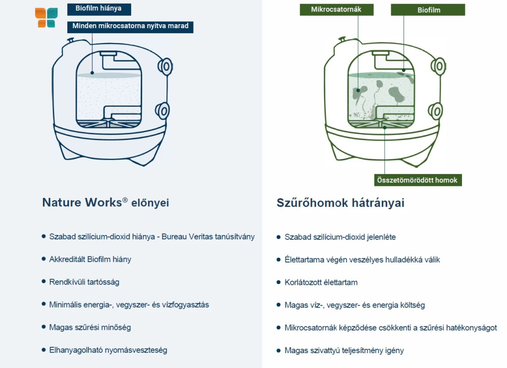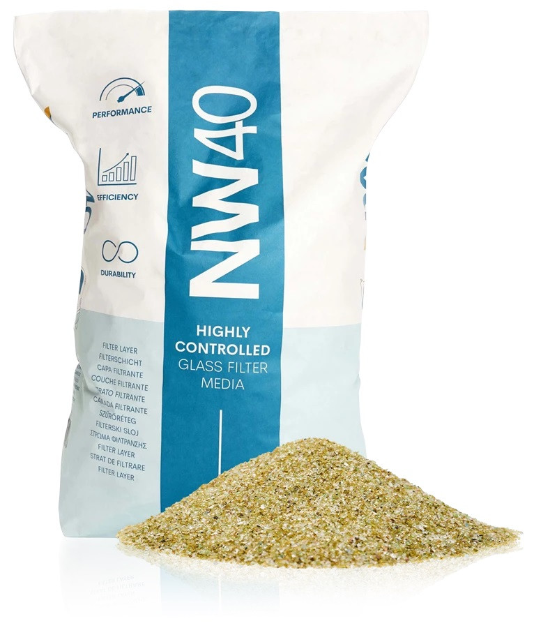 A Nature Works NW40 szűrőüveg egy fejlett, újrahasznosított zöld üvegből készült szűrőközeg, amely kiváló teljesítményt és hosszú élettartamot biztosít medencevíz-szűréshez. A gyártás során ellenőrzött forrásból származó alapanyagot használnak, amely egy kettős fertőtlenítési folyamaton – ózonos kezelésen és UV-sugárzáson – megy keresztül, így garantált a tiszta és biztonságos szűrőközeg.