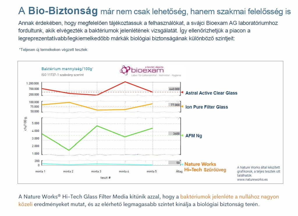• Tiszta, kalibrált és prémium minőségű szűrőközeg