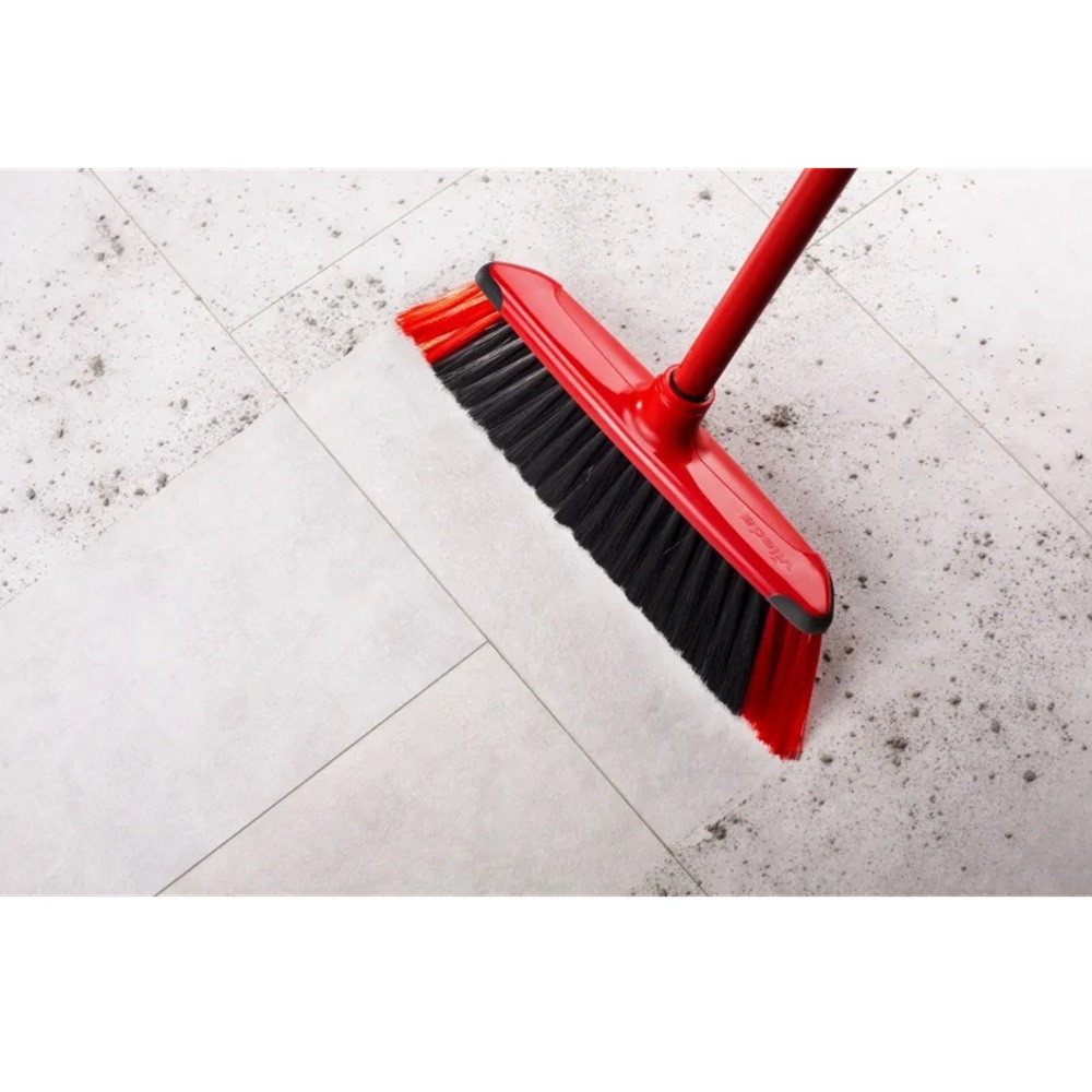 A Vileda DuActiva seprű innovatív kialakításának köszönhetően különösen hatékony, mert a sörték mellett a habszivacs rész is aktívan gyűjti a port. A por nem száll a levegőben, így allergiások számára is ideális választás. A masszív, 130 cm hosszú fémnyél stabil fogást biztosít, a seprűfej pedig minden sarkot és rést könnyedén elér. Otthoni és professzionális használatra egyaránt kiváló.