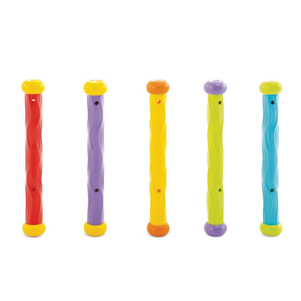 Tedd még izgalmasabbá a búvárkodást ezekkel a víz alatti játékpálcikákkal, amelyek vidám színeikkel és különleges viselkedésükkel azonnal lekötik a gyerekeket. A pálcikák a vízbe dobva lesüllyednek a medence aljára, ahol függőleges helyzetben megállnak, így könnyen észrevehetők és felvehetők. Puha, rugalmas anyaguk biztonságos játékot tesz lehetővé 6 éves kortól.