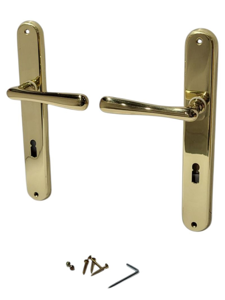 Ez a kilincspár nemcsak díszít, hanem valódi komfortot nyújt: ergonomikus karjai kellemes fogást adnak, így a nyitás-zárás könnyed mozdulattá válik. A fényes arany bevonat ellenáll a karcolásoknak és a korai kopásnak, ezért hosszú ideig megőrzi csillogó megjelenését. A teljes garnitúra tartalmazza a rögzítőcsavarokat és az imbuszkulcsot, így a beszereléshez nem kell külön szerszámkészletet beszerezned.