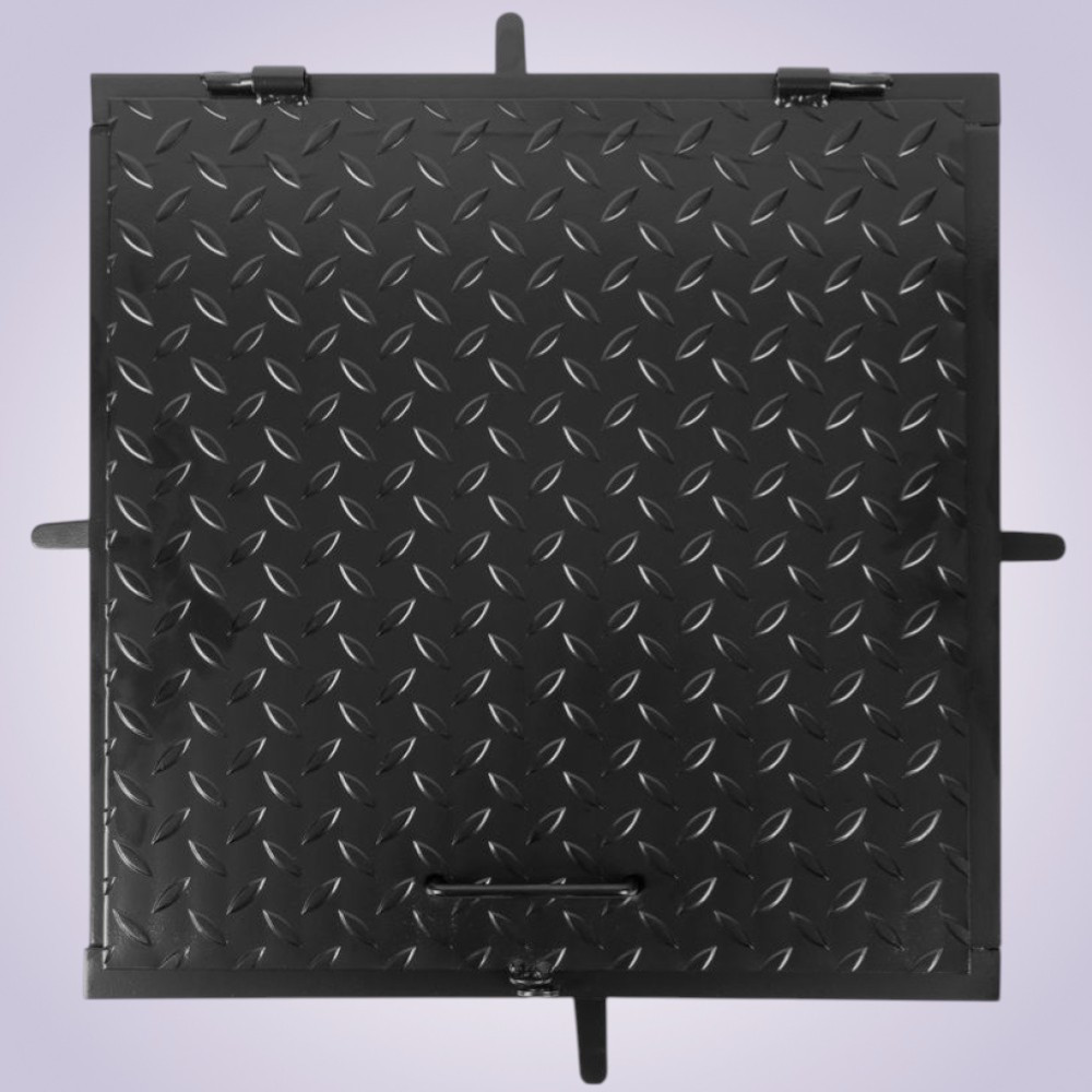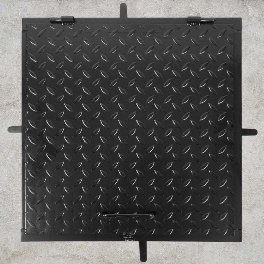 Az Aknafedél MC60 600x600 mm-es fedlap ideális választás csatornaakna, vízóraakna vagy egyéb közműnyílás biztonságos lefedésére. 3 mm vastag, bordázott felülete nagy tapadást ad, a masszív fémszerkezet – 12 kg önsúly – stabilan viseli a terhelést akár 150 kg-ig. Fekete, UV-álló bevonata ellenáll az időjárás viszontagságainak, a beépített erős zsanérok és a zárható kialakítás pedig megakadályozza a jogosulatlan nyitást.
