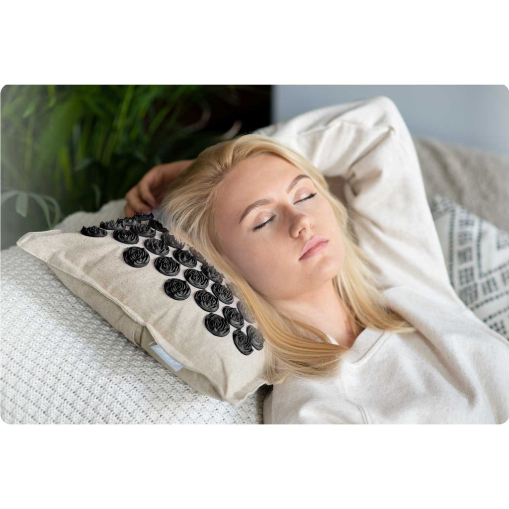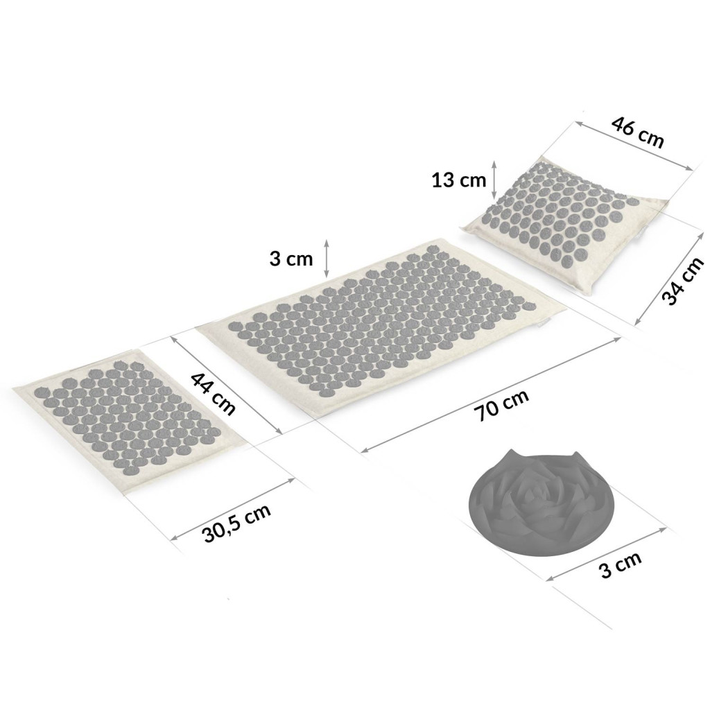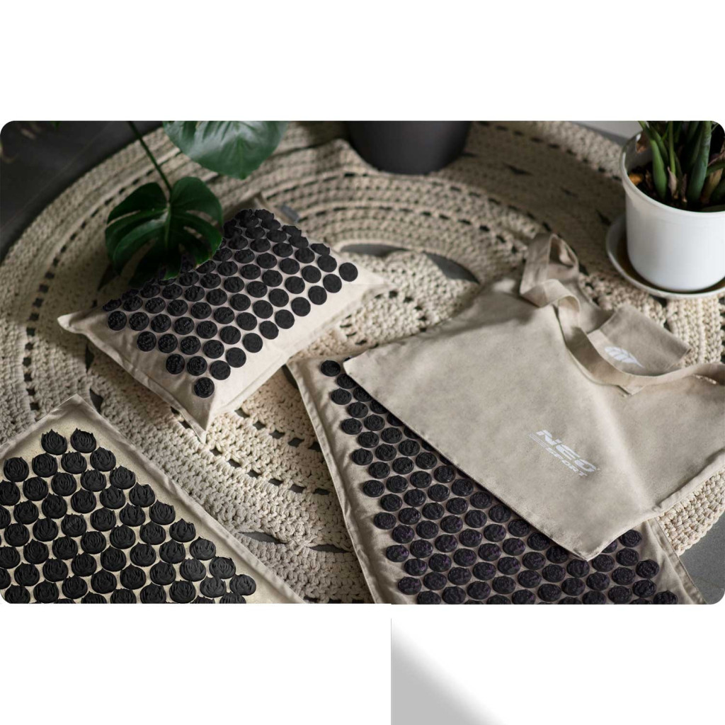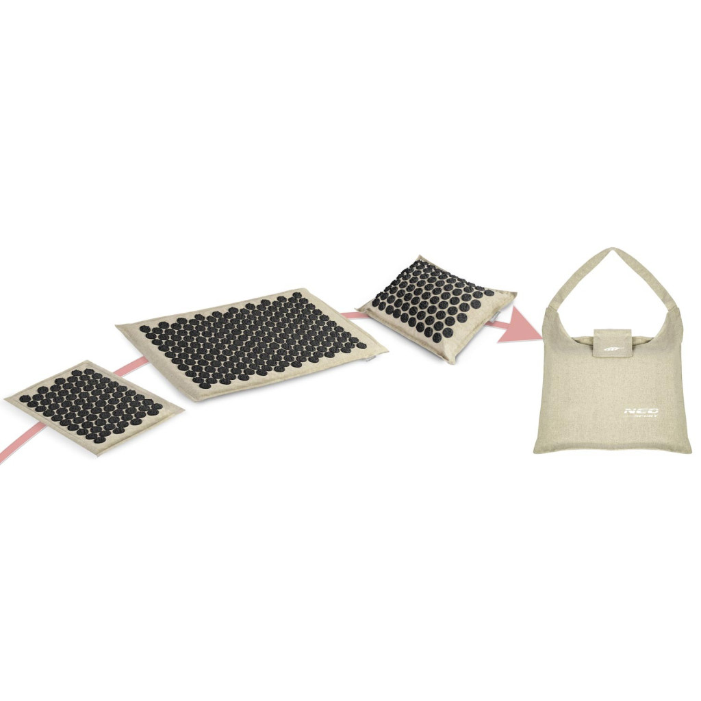 A Neo-Sport NS-902 háromrészes akupresszúrás szőnyegszett rózsaformájú tüskés korongjaival célzottan stimulálja a bőrt, így támogatja a test természetes regenerációját. A két szőnyegen összesen 240, a párnán további 76 korong található, amelyek finom nyomást gyakorolnak a reflexpontokra. A 50% lenvászon–50% pamut huzat levehető és tépőzárral rögzül, a 1,8 kg-os szett pedig stílusos hordtáskában érkezik, hogy bárhová magaddal vihesd.