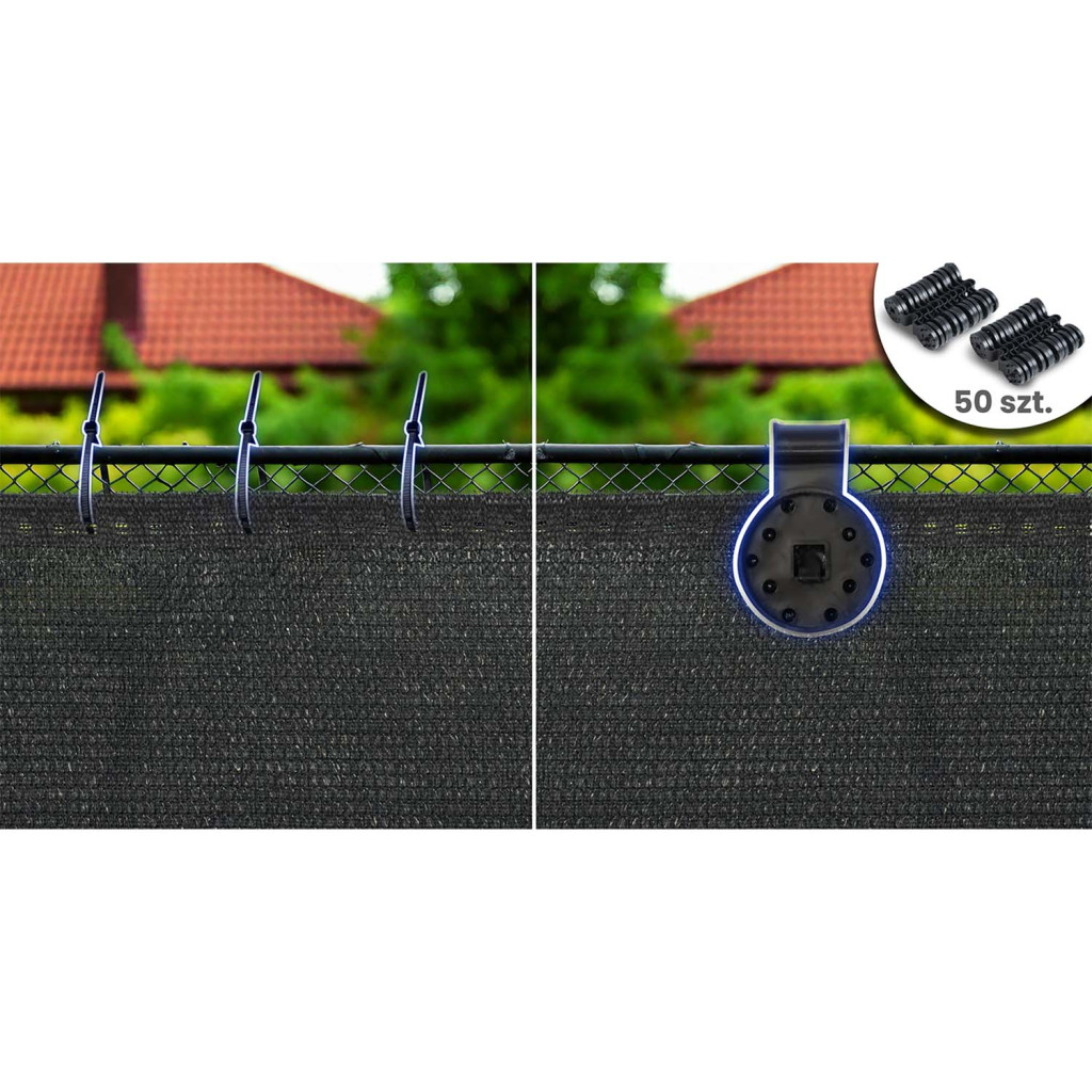 Az árnyékoló háló egyszerre óv a kíváncsi pillantásoktól és a vakító napsütéstől, miközben kellemes légmozgást enged át. A mellékelt 50 erős kapocs stabil, szerszámmentes rögzítést tesz lehetővé, így pillanatok alatt felhelyezheted kerítésre, erkélykorlátra vagy pergolára. Strapabíró anyaga nem szívja magába a nedvességet, ezért gyorsan szárad, formáját nem veszti el, és nem rojtosodik.
