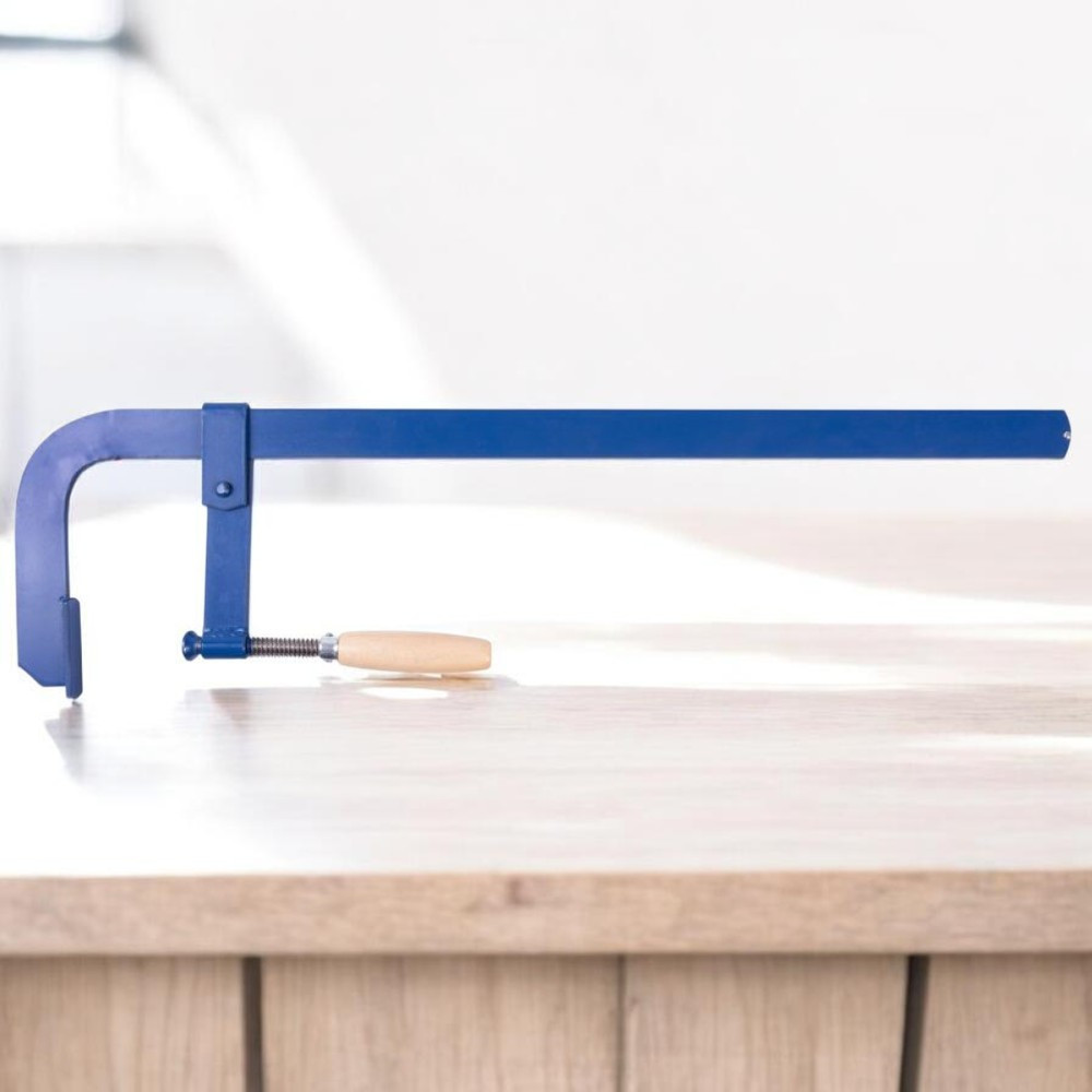 A METALKOV 500 mm-es asztalos szorítóval stabilan és egyenletesen rögzítheted a ragasztott falapokat, bútoralkatrészeket. 0,3 MPa átlagos nyomásával és 120 cm²-es szorítófelületével biztos tartást ad, miközben a merev, EN 10025-2 E335 acélból készült kar ellenáll az elhajlásnak. A kék, korrózióvédelemmel ellátott profil hosszú élettartamot garantál, a TR 18×4 menetes orsó pedig simán fut. A natúr fanyél kényelmes fogást kínál, így a nagy erő sem terheli a csuklót.