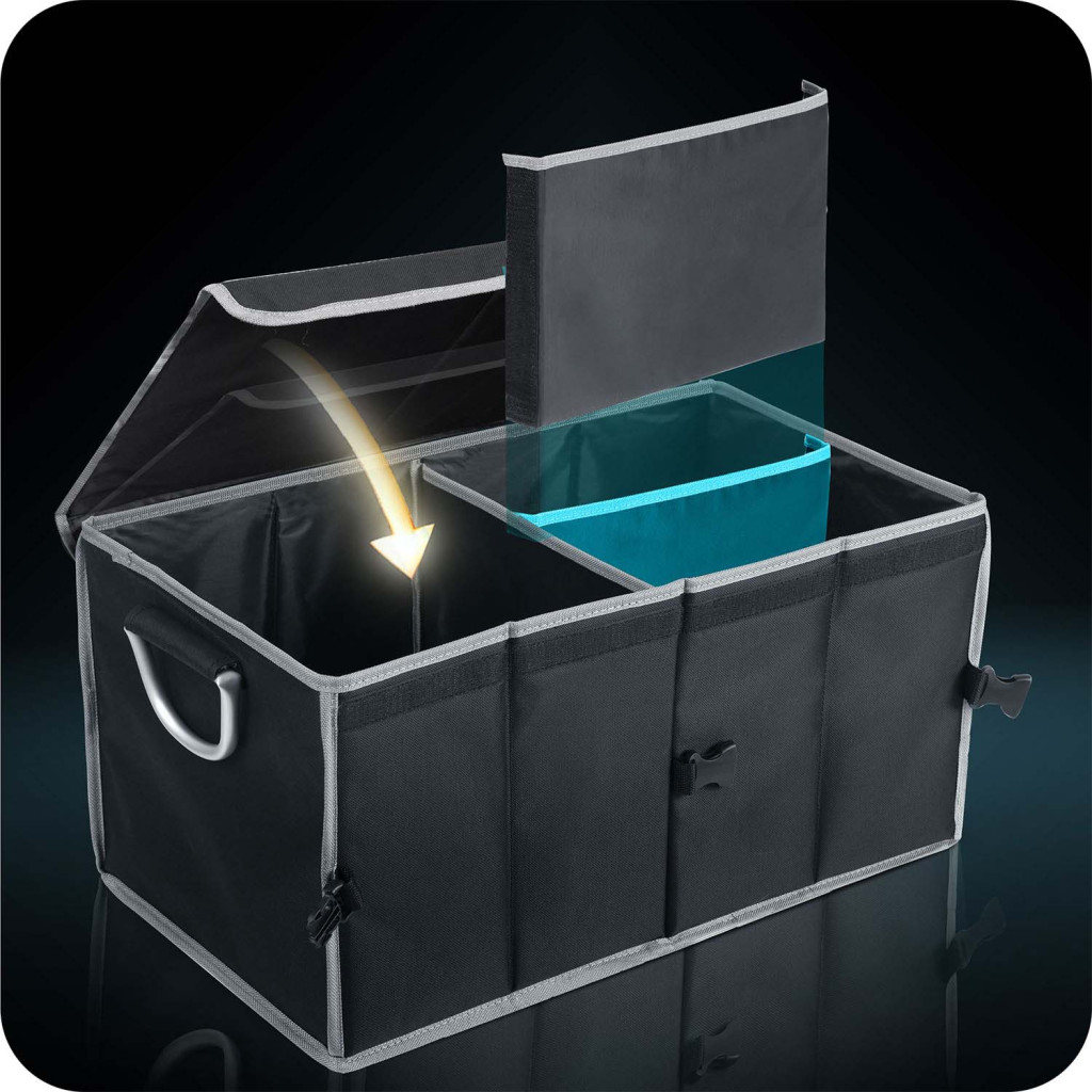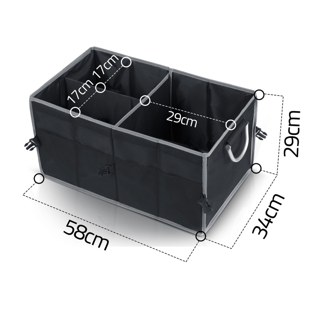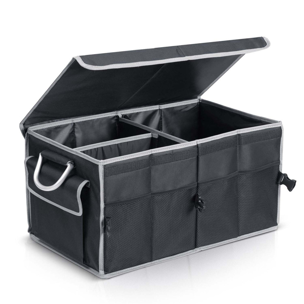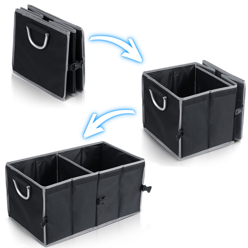 Az állítható belső kialakítás pontosan annyi helyet biztosít, amennyire szükséged van, így nem bukfenceznek a szerszámok és a bevásárlótáskák. A csúszásgátló tépőzárak megakadályozzák az elmozdulást kanyarban vagy fékezéskor, óvva az autó burkolatát és a rakományt. A külső hálós, valamint a zárható zsebekben az apróbb holmik rendszerezett otthonra lelnek, ezért minden pillanat alatt kéznél lesz.
