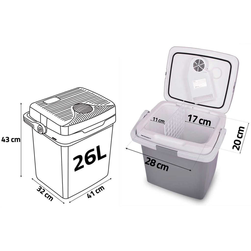 A Berdsen Icemax 26 l hordozható hűtőláda ideális társ autós kirándulásokhoz, kempingezéshez vagy strandoláshoz. Tágas, 26 literes belsejében üdítők, harapnivalók és gyümölcsök is kényelmesen elférnek, az ECO üzemmód pedig energiatakarékos működést biztosít. A fedélbe épített ventilátor gyorsan keringeti a hideg levegőt, a digitális kijelzőn pedig egyszerűen nyomon követheted a beállított hőfokot. Szürke–fehér, modern külseje stílusosan mutat minden csomagtartóban, a masszív hordfül megkönnyíti a szállítást.