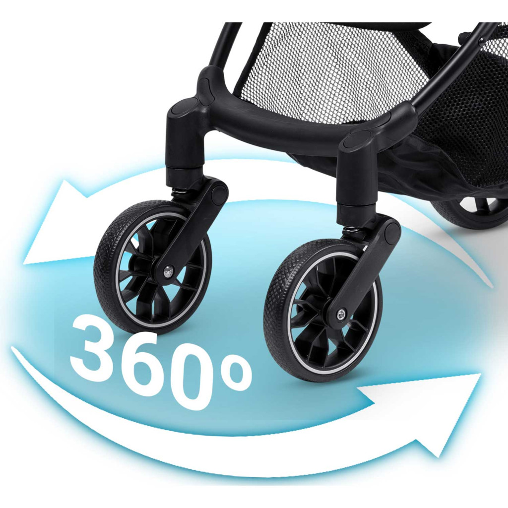 • Rugózott, 360°-ban forgó első kerekek – sima haladás bármilyen úton
