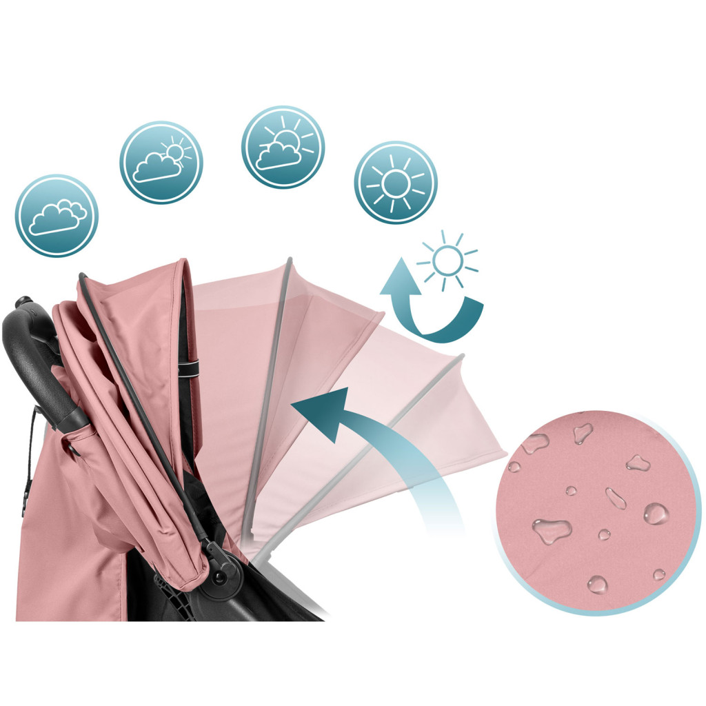 Fedezd fel a mindennapi séták szabadságát a Paseo Nukido sport babakocsival! A mindössze 8,5 kg-os váz könnyed kezelhetőséget kínál, a rózsaszín kupola és az elegáns fekete váz stílusos megjelenést biztosít. A tágas ülőrész fekete textilje ölelésként veszi körül a babát, a masszív, kis átmérőjű kerekek pedig gördülékeny haladást garantálnak. A babakocsi egy mozdulattal kompakt csomaggá hajtható, így a városi közlekedésben és utazáskor is praktikus társ.