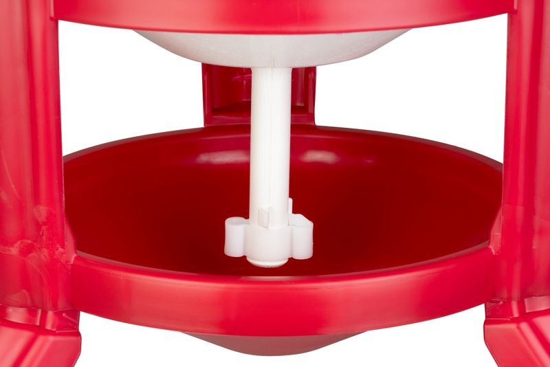 Biztosítsd baromfiállományod folyamatos, higiénikus vízellátását az Itató GOLD 30 literes műanyag itatóval! A fehér, nagy térfogatú tartályból a víz szabályozottan áramlik a piros, magasított tálcába, így a madarak nem piszkítják be könnyen. A háromlábú állvány stabilan tartja a 3,4 kg-os szerkezetet még egyenetlen terepen is, a széles csavaros kupak pedig pillanatok alatt utántöltést tesz lehetővé. Strapabíró, napfény- és ütésálló kialakítása révén ideális udvari és kisebb gazdasági használatra.