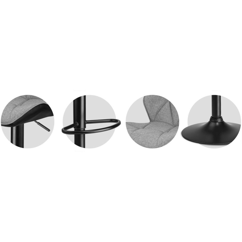 A Castel háttámlás bárszék elegánsan ötvözi a modern bárszékek letisztult megjelenését a lounge székek puha kényelmével. A fekete porszórt acél talp biztos stabilitást ad, a szürke, rombuszmintában steppelt ülőfelület és háttámla pedig prémium hangulatot kölcsönöz konyhaszigetnek vagy otthoni bárpultnak. A beépített gázliftes mechanika 62–84 cm között állítható üléspozíciót kínál, így könnyedén igazodhatsz bármilyen pultmagassághoz.