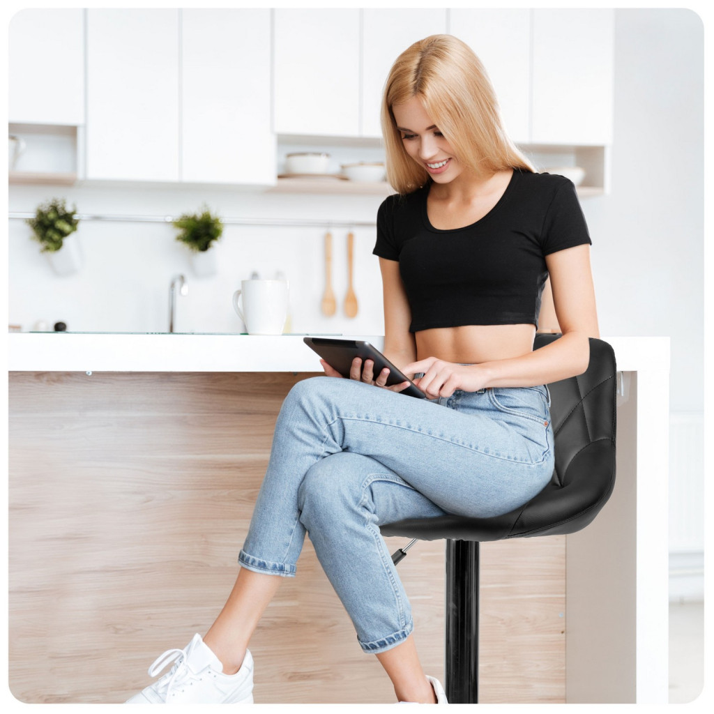 A lágyan ívelt háttámla tehermentesíti a derekat, így hosszabb beszélgetések vagy reggeli kávézások alatt is kényelmes marad az ülés. A gázrugós kar segítségével pillanatok alatt igazíthatod a pultod vagy asztallapod magasságához, így minden családtag számára megfelelő pozícióba állítható. A krómozott lábtartó optimális lábtámaszt nyújt, csökkentve a lábak fáradását, a csúszásgátló talpgyűrű pedig óvja a padlót a karcolásoktól.