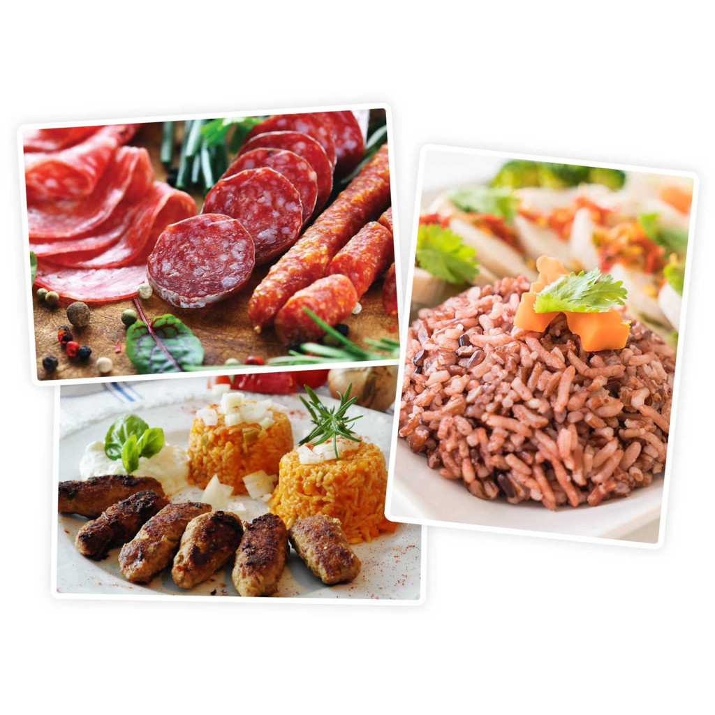 • Három rostély (3 mm, 5 mm, 7 mm) és kolbásztöltő adapter