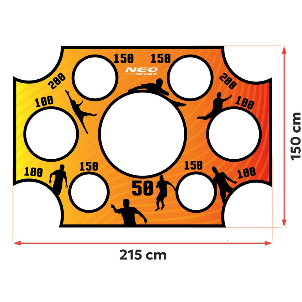 Szeretnéd a kapura lövéseid pontosságát mesteri szintre emelni? A Neo-Sport 215 x 150 cm-es célponthálóval minden gyakorlás élménnyé válik! A strapabíró, vízlepergető ponyva még a legerősebb lövéseket is megállítja, a hét különböző méretű, pontszámmal jelölt lyuk pedig játékos kihívássá teszi az edzést. A látványos narancs-fekete design azonnal felkelti a figyelmet, a mellékelt rugalmas rögzítőpántokkal pedig percek alatt felszerelheted bármely 215 x 150 cm-es kapura.