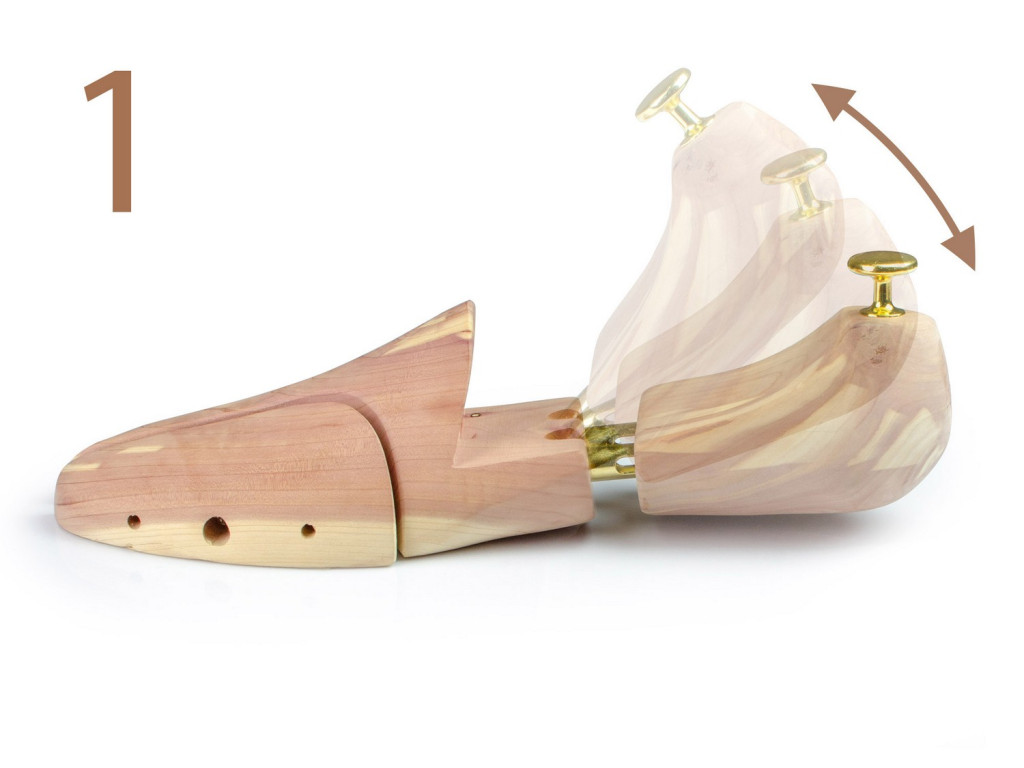 Ez a sámfa nemcsak kitölti a cipő üres terét, hanem el is vezeti a nedvességet, így a belső bélés gyorsabban szárad, a kellemetlen szagoknak nincs esélyük. A cédrus baktériumokat gátló tulajdonságai óvják a lábbelik higiénéjét, miközben finom, fűszeres illatot áraszt. Az állítható sarokdőlésnek és szélességnek köszönhetően különböző fazonokhoz tökéletesen igazítható, így több pár cipő karbantartása is megoldható egyetlen eszközzel.