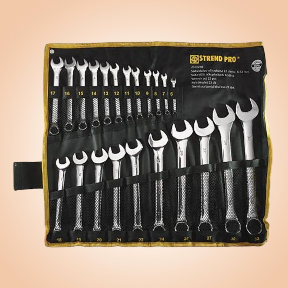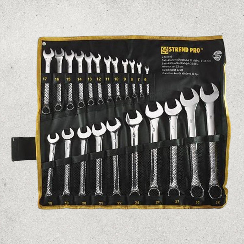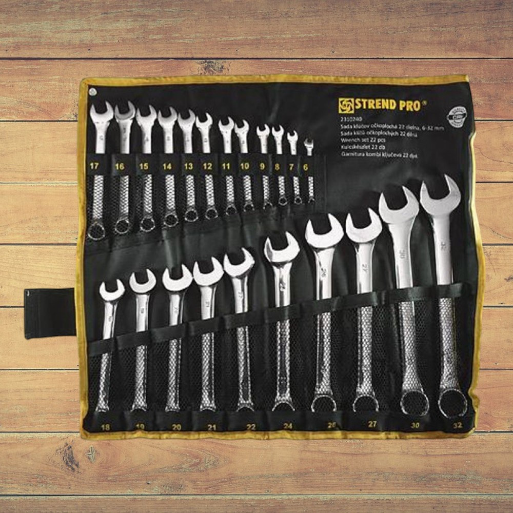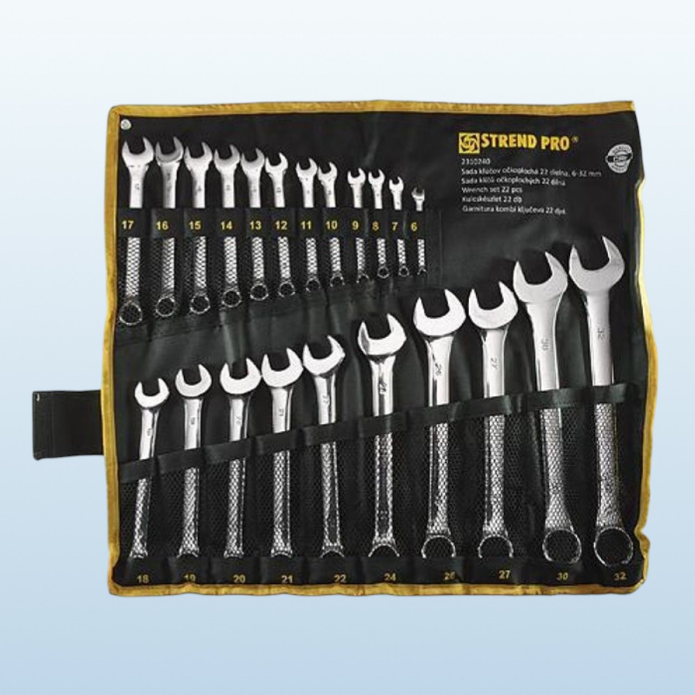• 22 db csillag-villás kulcs: 6, 7, 8, 9, 10, 11, 12, 13, 14, 15, 16, 17, 18, 19, 20, 21, 22, 24, 26, 27, 30, 32 mm