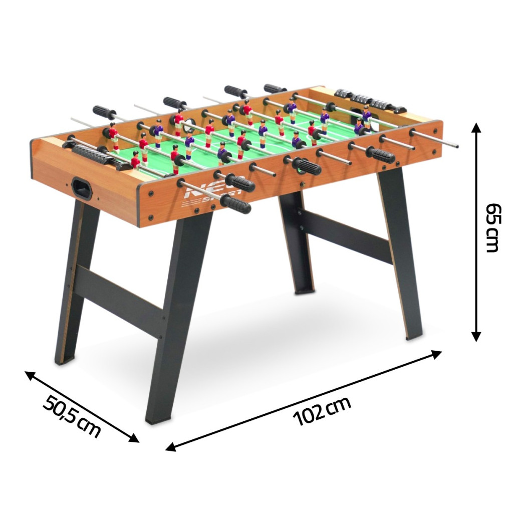 Masszív, mégis elegáns kialakítása révén igazi dísze lesz a nappalinak vagy a közösségi térnek. A laminált MDF felület ellenáll a karcolásoknak, a 13 mm-es rudak pedig villámgyors labdaátadást tesznek lehetővé. A két mellékelt profi labda és a bedobónyílás azonnali újrakezdést kínál, a beépített gólszámlálók pedig felpörgetik a versenyszellemet. Könnyen szerelhető, így rövid időn belül indulhat a bajnokság.