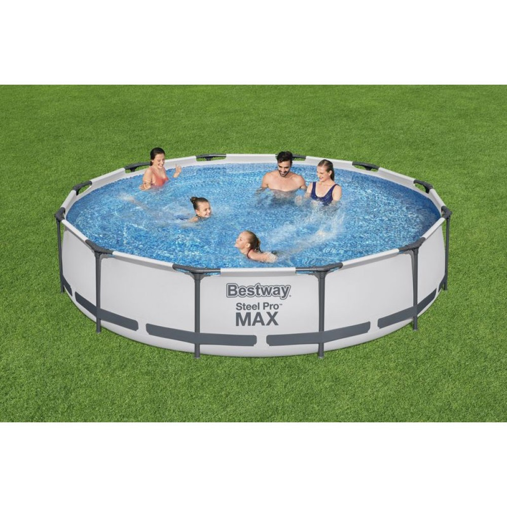 Legyen a kerted a nyár központja a Bestway Steel Pro MAX 3,66 × 0,76 m-es csővázas medencével! A korrózióálló acélvázat a FrameLink System rögzíti, így a szerkezet stabil és biztonságos. A DuraPlus háromrétegű bélés poliészter hálóval erősített, ezért nagy szakítószilárdságú, és ellenáll a napsütésnek valamint a vízkezelő szereknek. A 6 473 literes, kör alakú medence 20 perc alatt felállítható, a szezon végén pedig egyszerűen összecsukható.